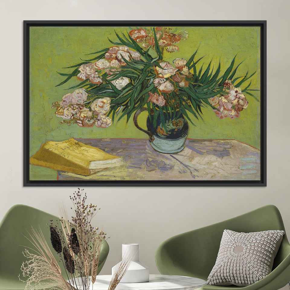 Vintage Floral Wall Art Canvas Print: Oleanders by Van Gogh,BLACK FRAMED CANVAS