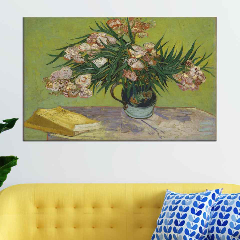 Vintage Floral Wall Art: Oleanders Canvas Print, Botanical Fine Art Decor,WRAPPED CANVAS