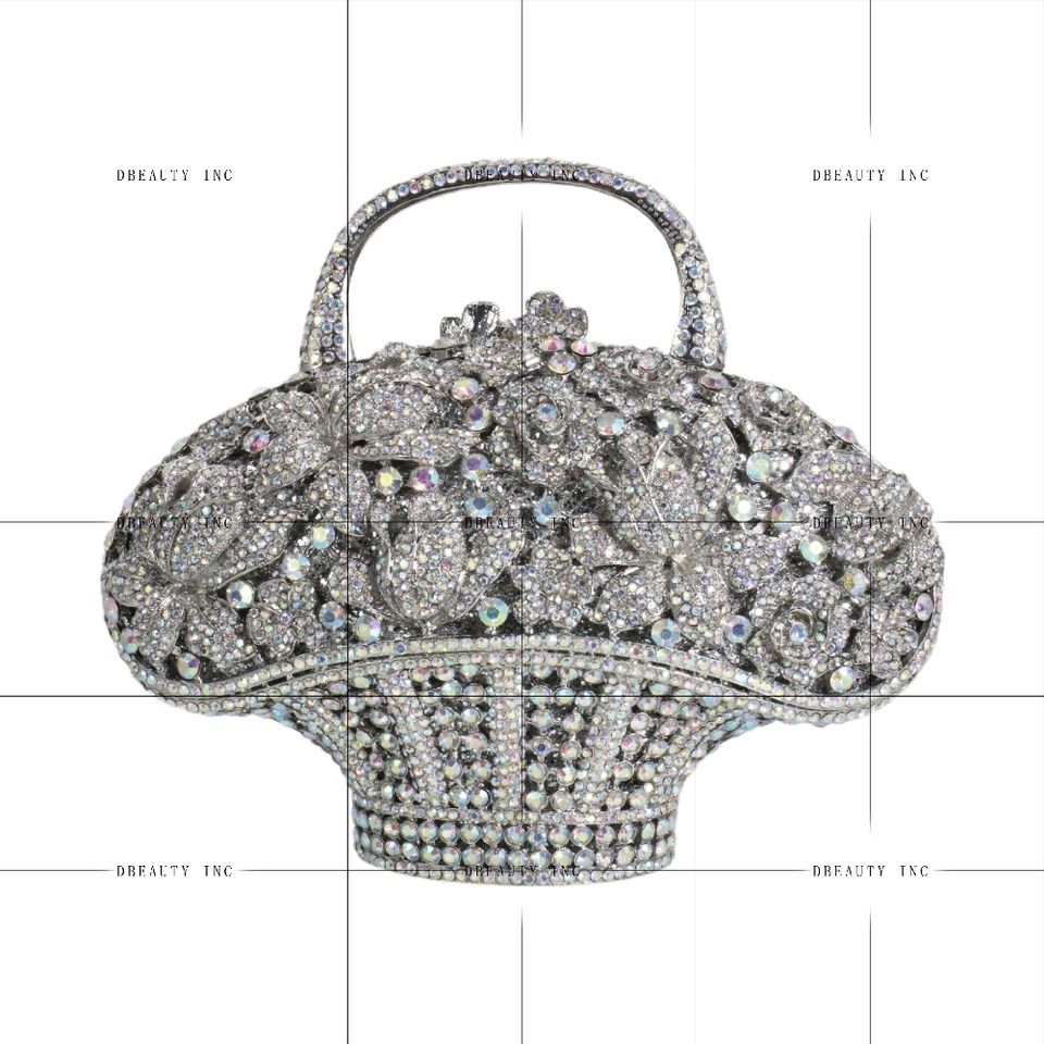 Vintage Flower Basket Crystal Evening ClutcWomen Diamond Floral Handbag Rhinestone Evening Bag for Party Wedding Prom