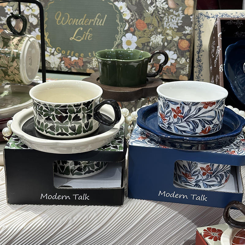 Vintage Flower Ceramic Coffee Mug and Saucer Set Girl Heart Creative Gift Latte Cup