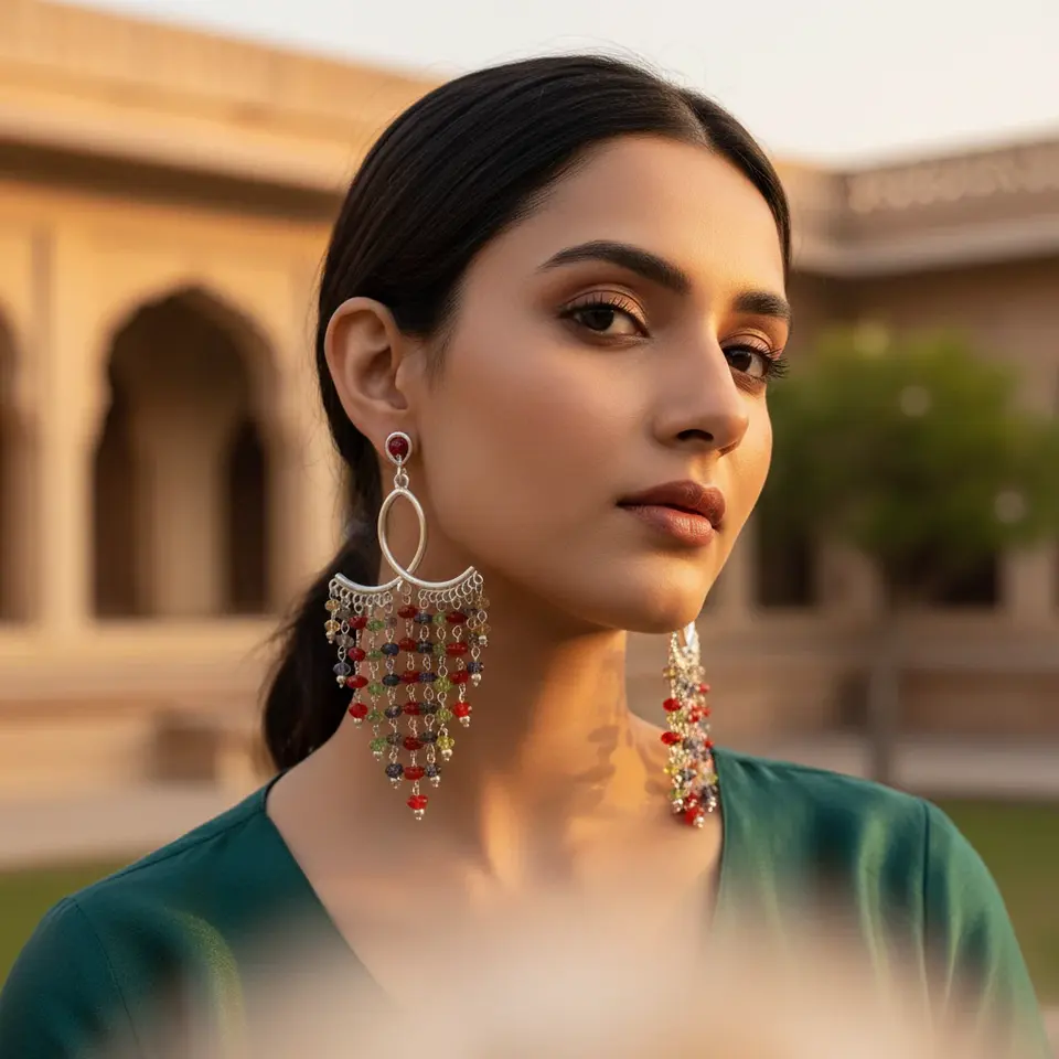 "Vintage Flower Drop Earrings with 925 Silver & Multi-Gemstones (Emerald & Diamond) for Women's Jewelry"