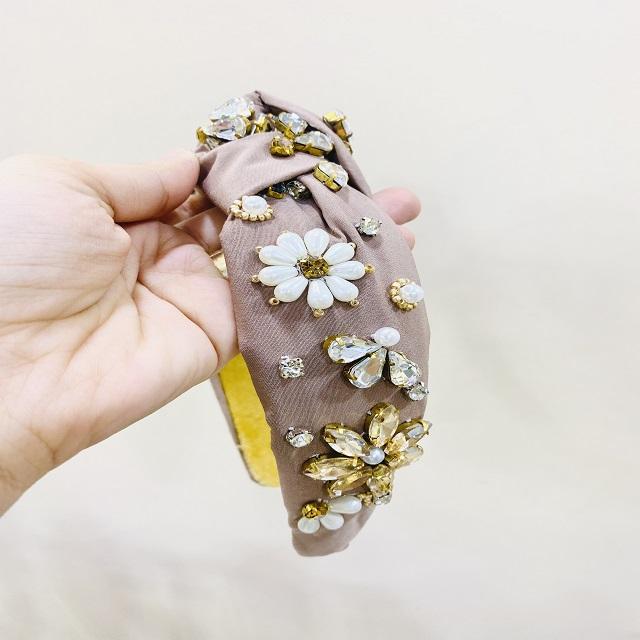 Vintage Designer Knotted Headband with Embellished Flower Rhinestone Beading Handmade Hair Accessory for Party Wear