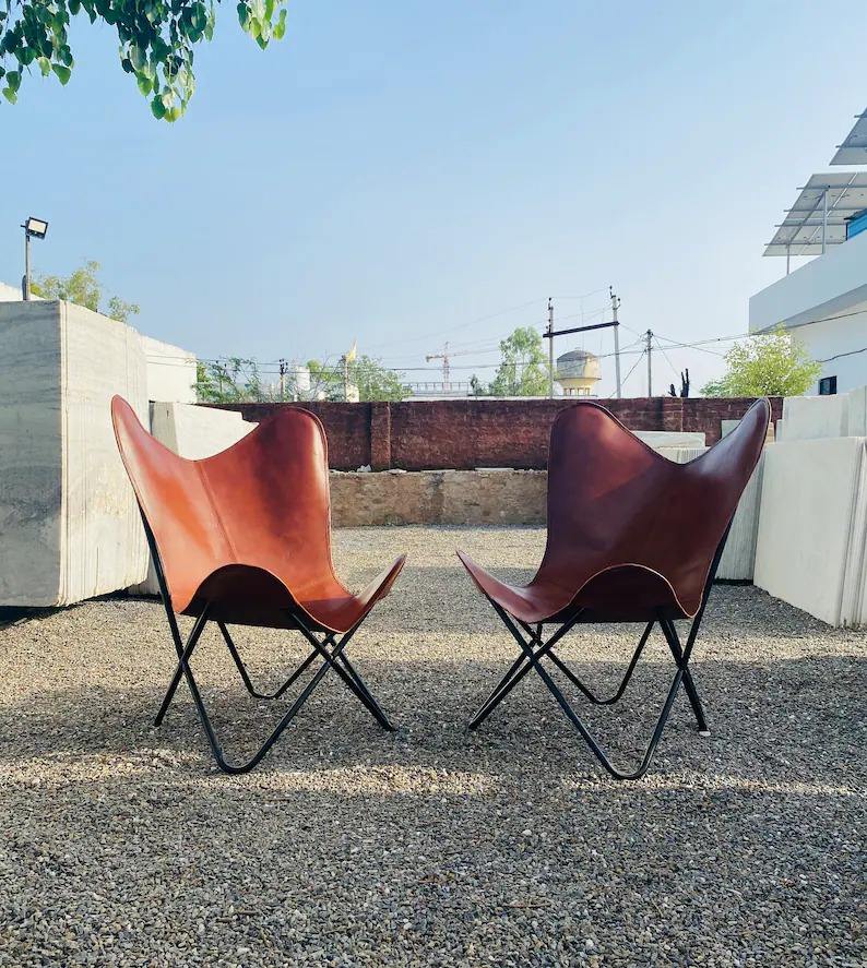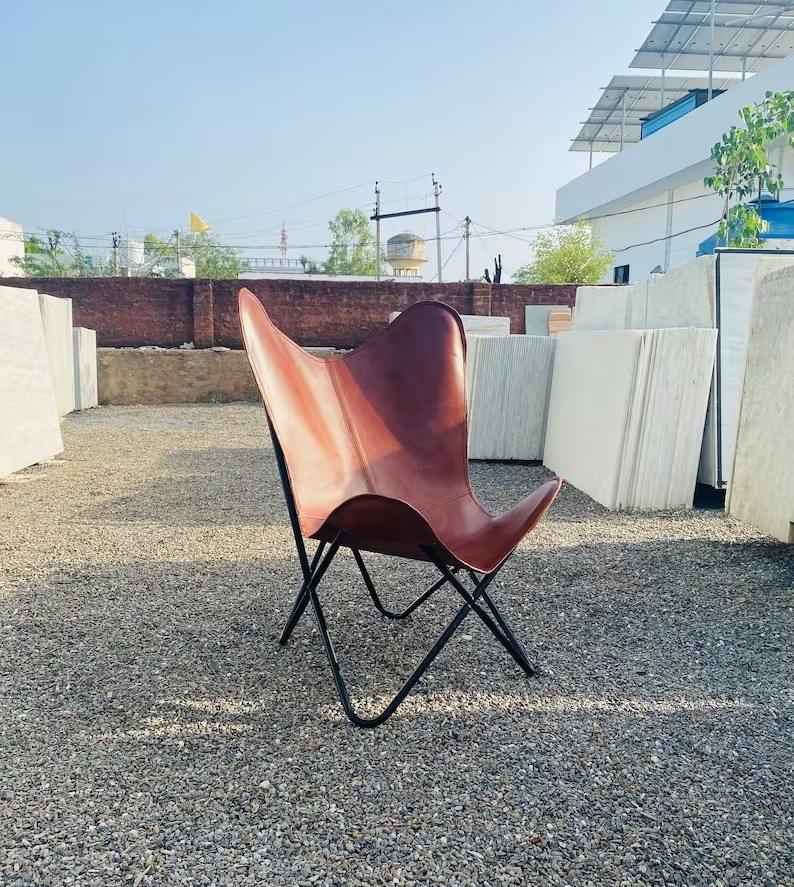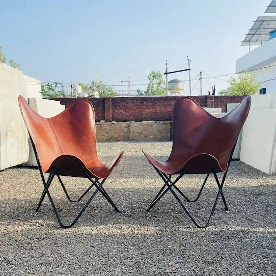 Vintage Folding Leisure Chair with Iron Frame Rustic Butterfly Design for Living Room Bedroom Outdoor Use