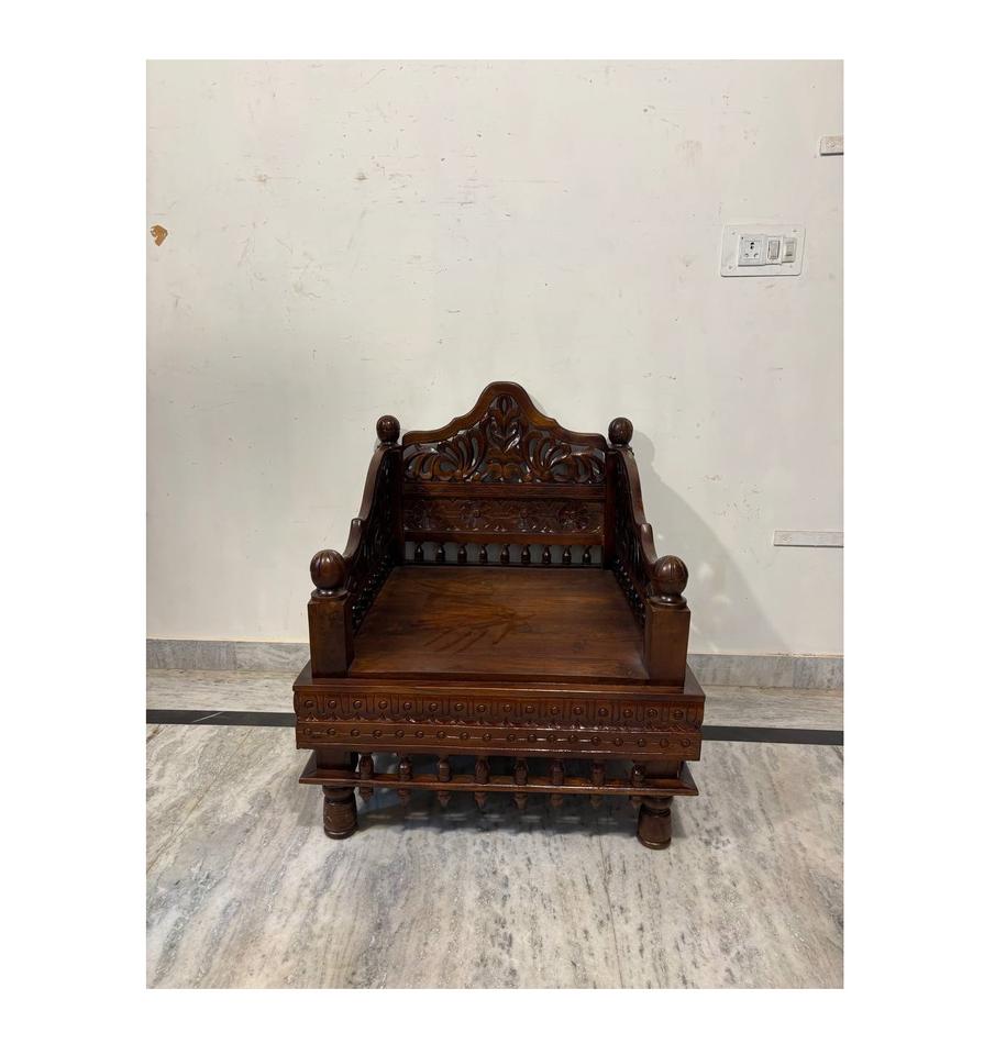 Vintage Folk Carved Traditional Sofa Set Intricately Handcrafted Wooden Living Room Furniture for Patio or Park Use