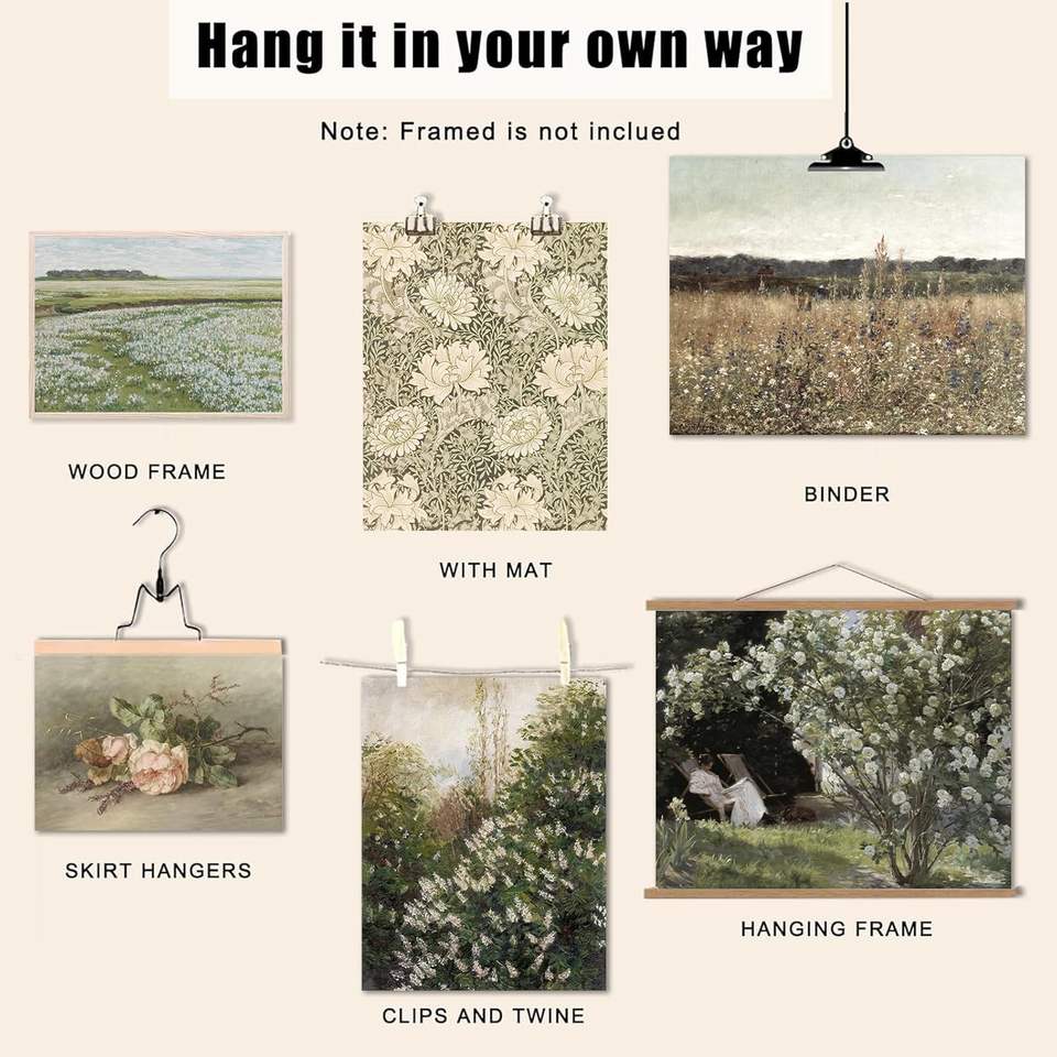 Vintage French Country Wall Art Floral Boho Poster Aesthetic Bedroom Living Room Spring Landscape Meadow Prints 14x11 Inches