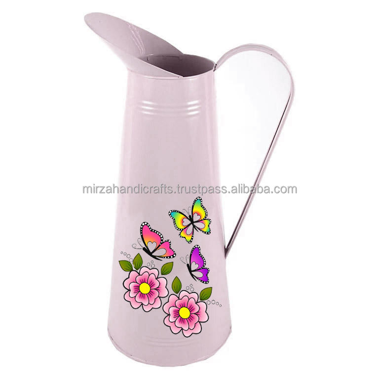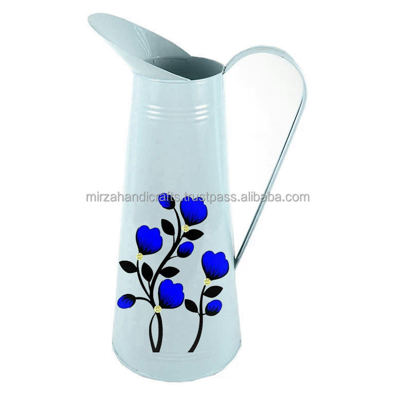 Vintage French Enamel Metal Pitcher Jug Water Enameled Colorful Flowers with Handle Decorative Pitcher Custom Price