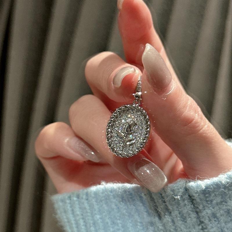 Vintage French Retro Elegant Temperament Oval Carved Pendant S925 Sterling Silver Rose Pendant with Platinum Rose Gold Material