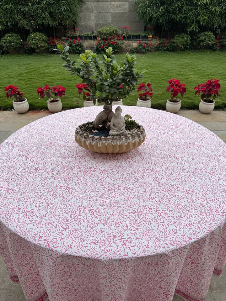 Vintage French Tablecloth Rose Pink Jaal Indian Hand Block Printed Botanical Prints Table Cover for Home Living
