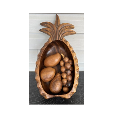 Vintage Fruit Shaped Wooden Vessels Bowls Pineapple Pear Bowl wooden serving bowl with server set for handmade and sale