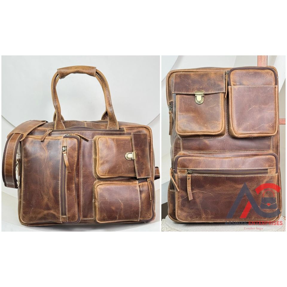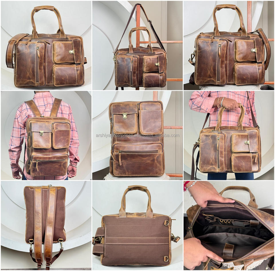 Full Grain Leather Convertible Backpack Crossbody Messenger Bag
