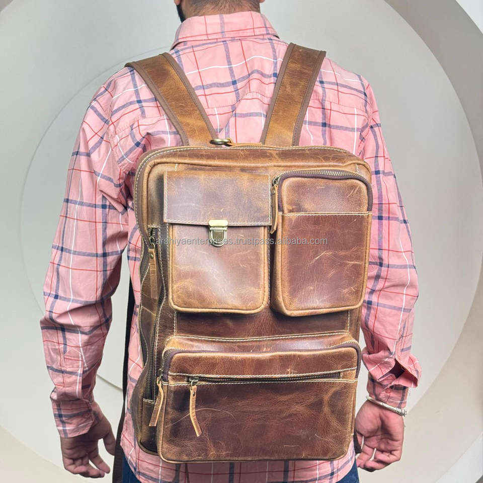 Vintage Full Grain Leather Convertible Backpack Crossbody Messenger Bag with Laptop Compartment for Travel Business & Daily Use