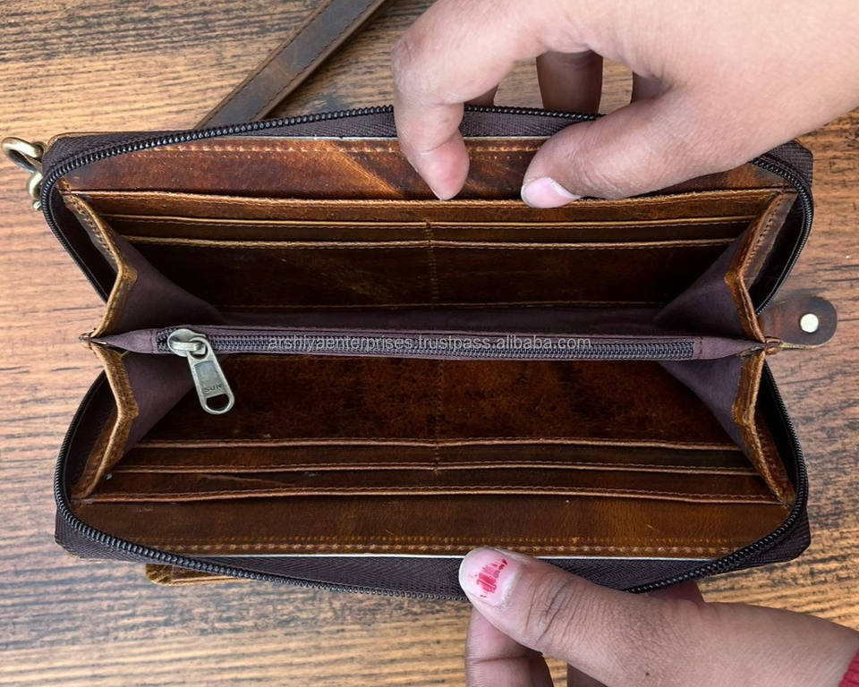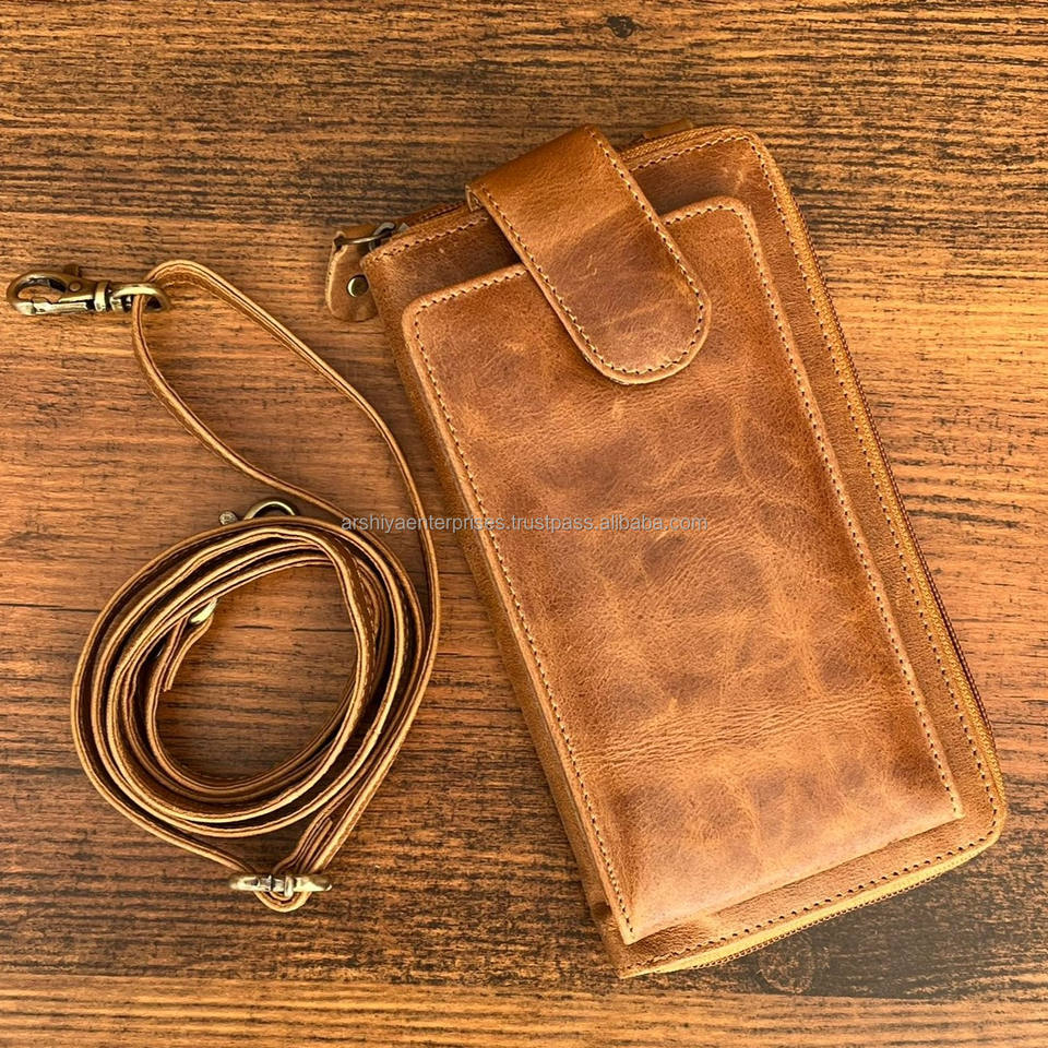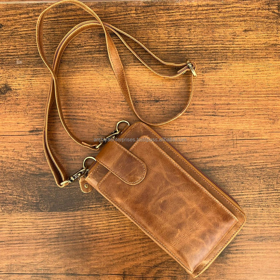 Vintage Full Grain Leather Phone Pouch Bags Women's Wristlet Crossbody Bags Genuine Cow Leather Mobile Phone Shoulder Sling Bags
