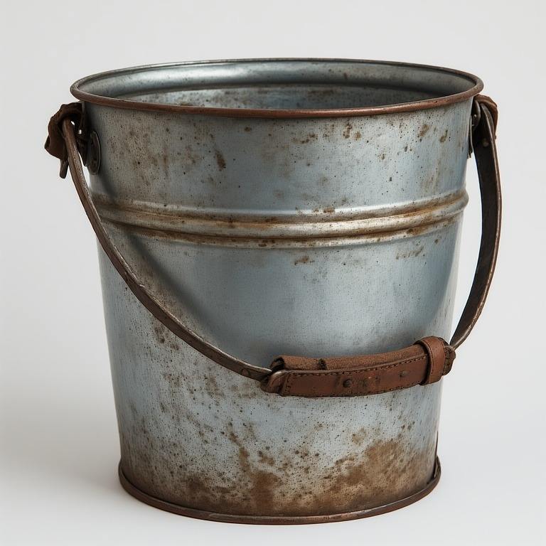 Vintage Galvanised Leather Planter With Cross Stitch Trim Artisan Handmade Offering Decorative Accent For Seasonal Interiors