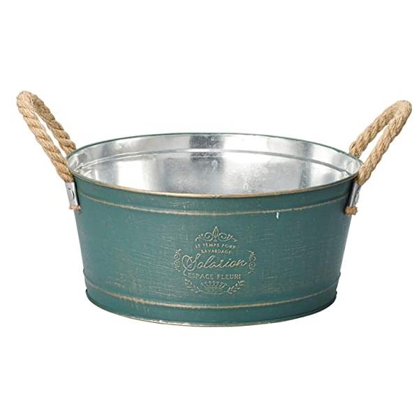 Vintage Galvanized Round Planter With Side Wood Handle for Garden or Home Office Balcony Decor Strong Wholesale Metal Flower Tub