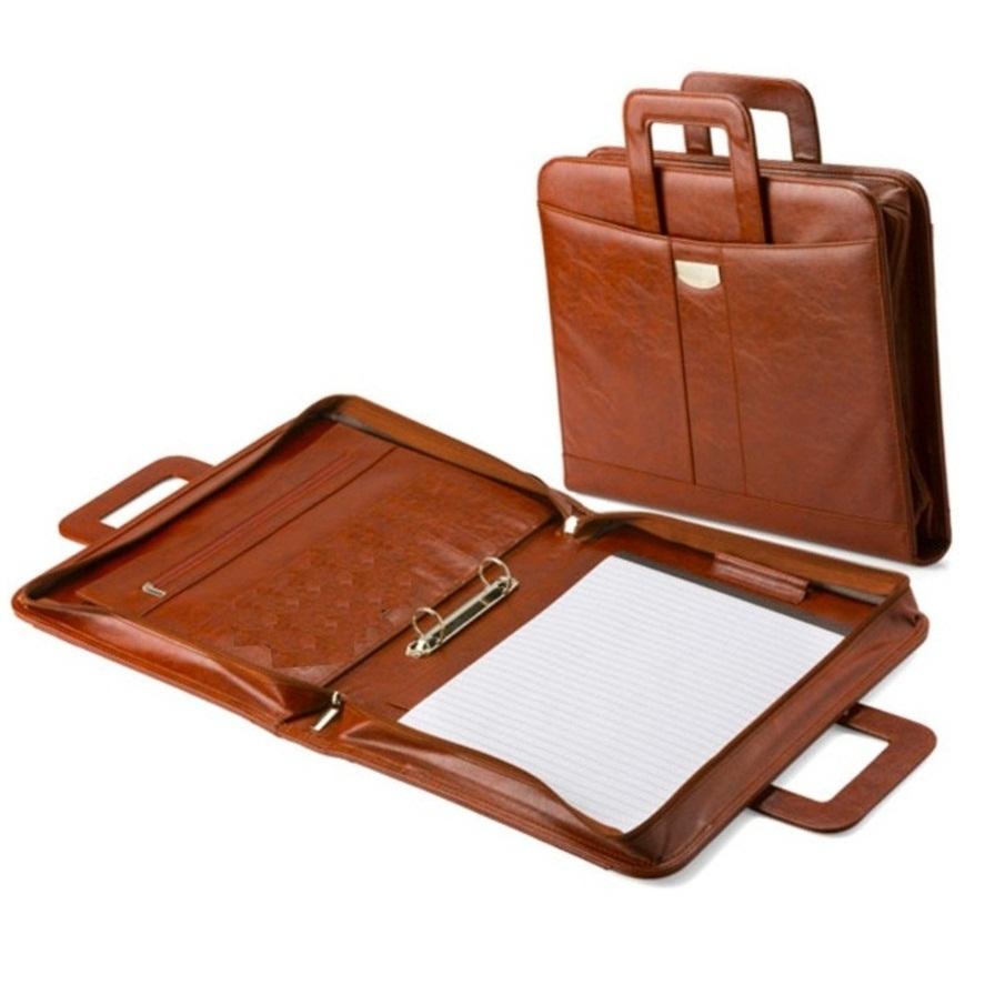 Vintage Genuine Brown Leather Ring Binder with Handle Soft Padded A4 File Folders with Pocket for Document Storage