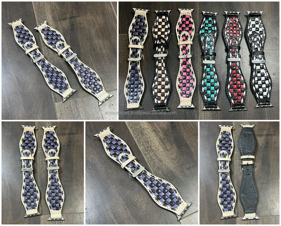 Product name:Hand Tooled Checkered Leather Smart Watch Band