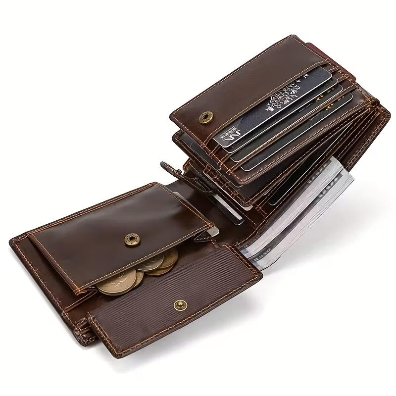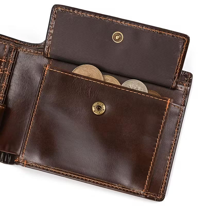 Vintage Genuine Genuine Leather Trifold Wallet for & Women - 15 Card Slots, Snap Coin Pocket, Top-Grain Cow Genuine Leather