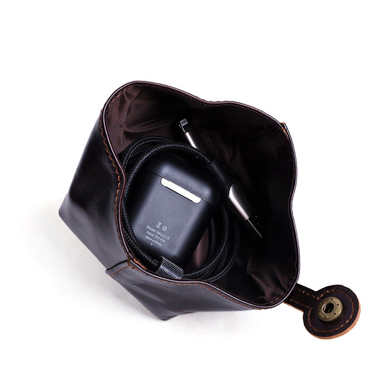 Vintage Genuine Leather Button Compact Portable Coins Keys Cards Earphone Storage Bag Unisex Simple Versatile Hand-Held Coin