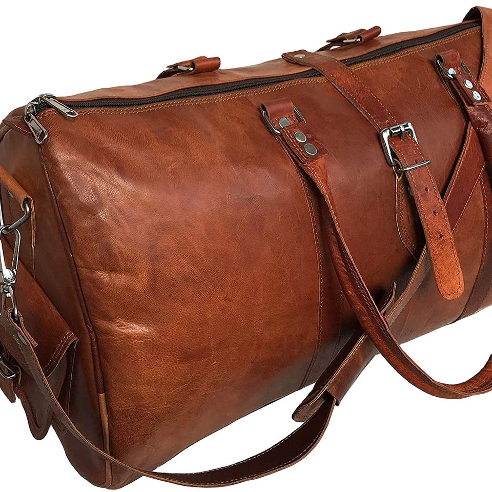 Vintage Genuine Leather Duffel Bag for Men and Women Candy Pattern Travel Gym Sports Accessories for Overnight Weekend Trips