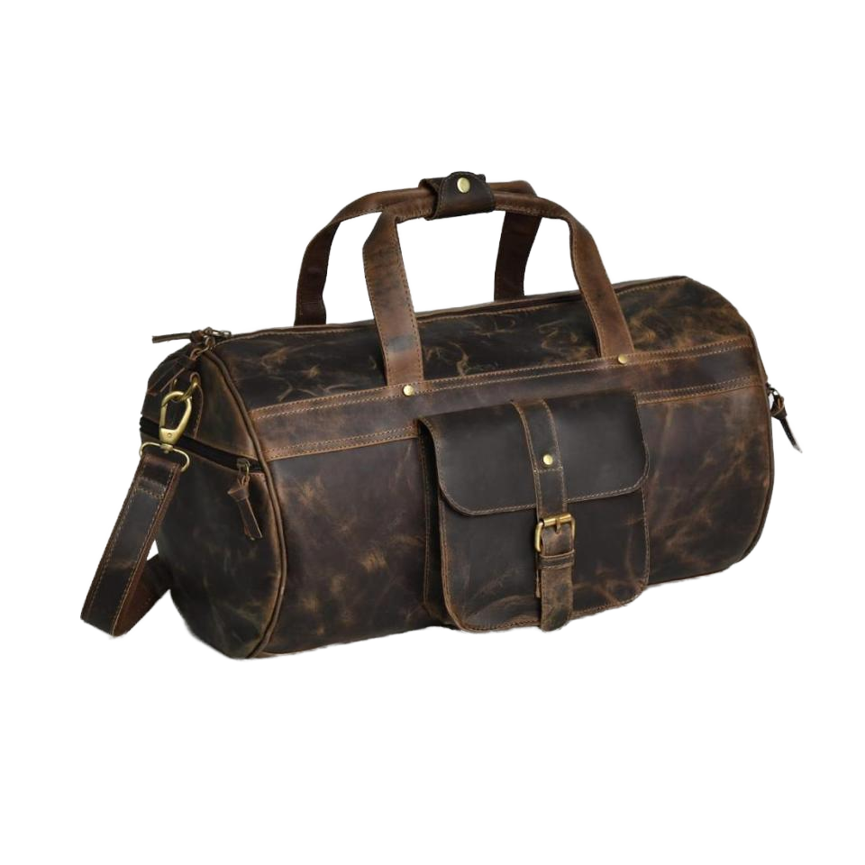 Vintage Genuine Leather Duffel Gym Bag Diamond Pattern Zipper Closure Adjustable Strap-Durable Lightweight Large Capacity Travel