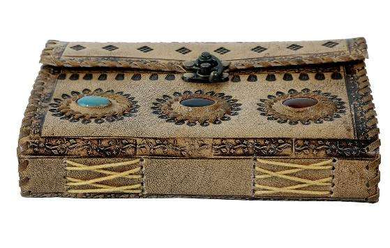 Vintage Genuine Leather Journal Notebook Sketch Books Three-Studded Gem Stone Latch Deckle Edge Thread Sewing