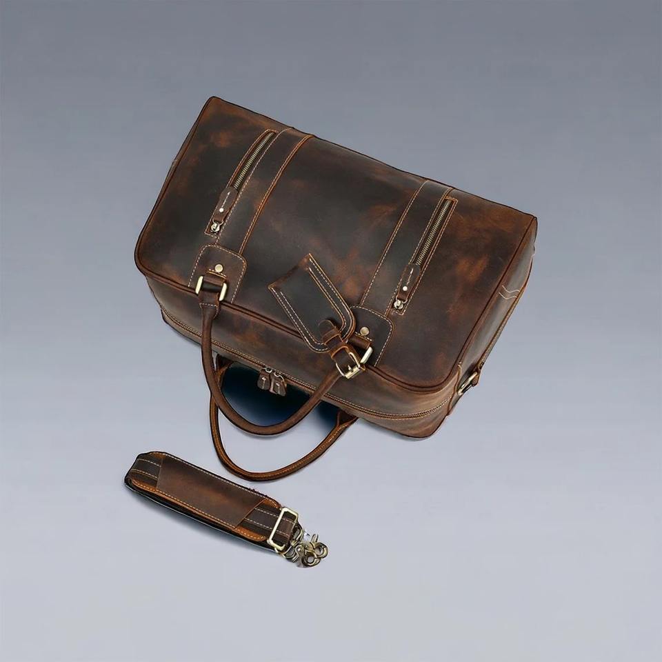 Vintage Fashionable Men's Crossbody Bag Genuine Crazy Horse Leather Handmade Original Natural Top Cowhide Zipper for Travel