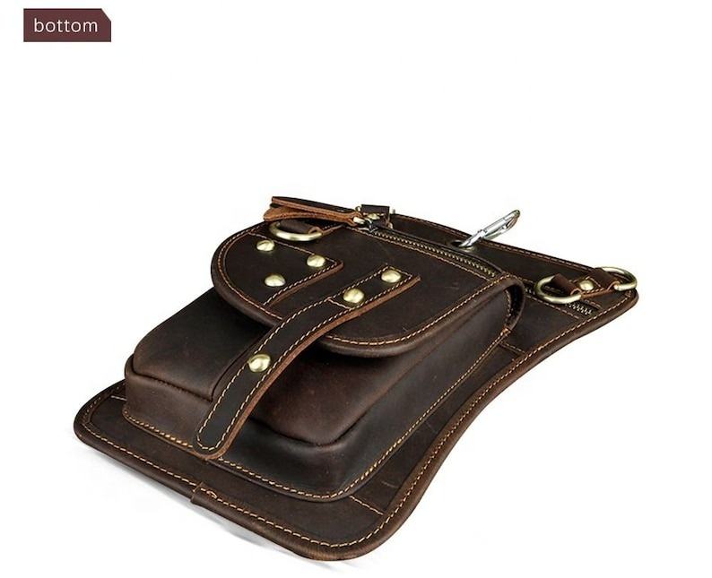 Vintage Genuine Leather Waterproof Durable Leg Bag for Unisex Motorcycle Waist Fanny Pack Customizable Size Hiking LB-0004