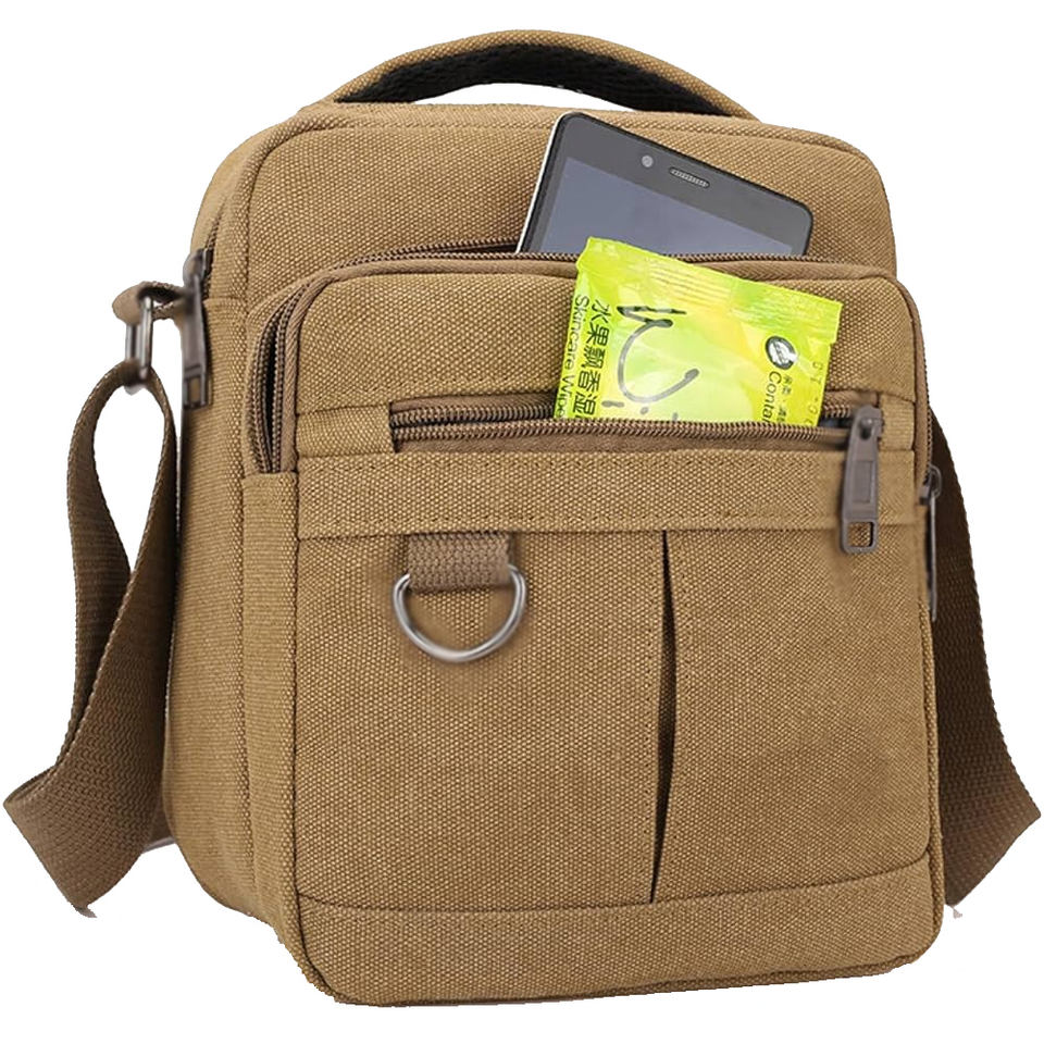 Vintage Genuine Leather Waxed Canvas Messenger Bag for Men Women's XL Briefcase with Portable Feature and Polyester Lining