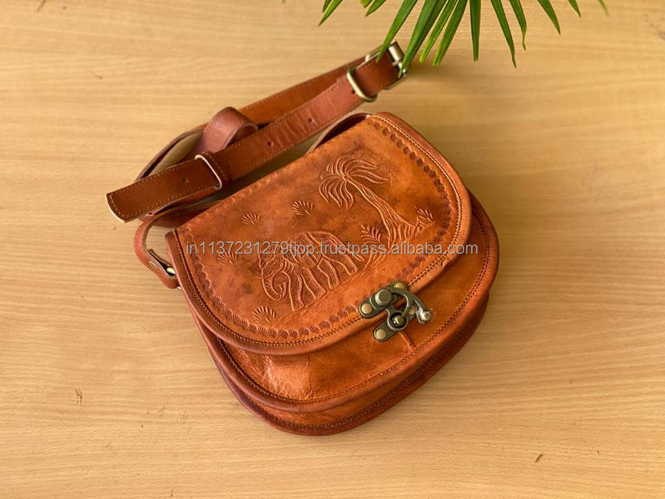 Vintage Goat Leather Handmade Leather Sling Bag Embossed Indian Leather Purse Unique Stylish Bag