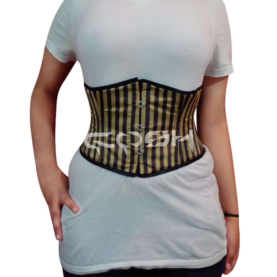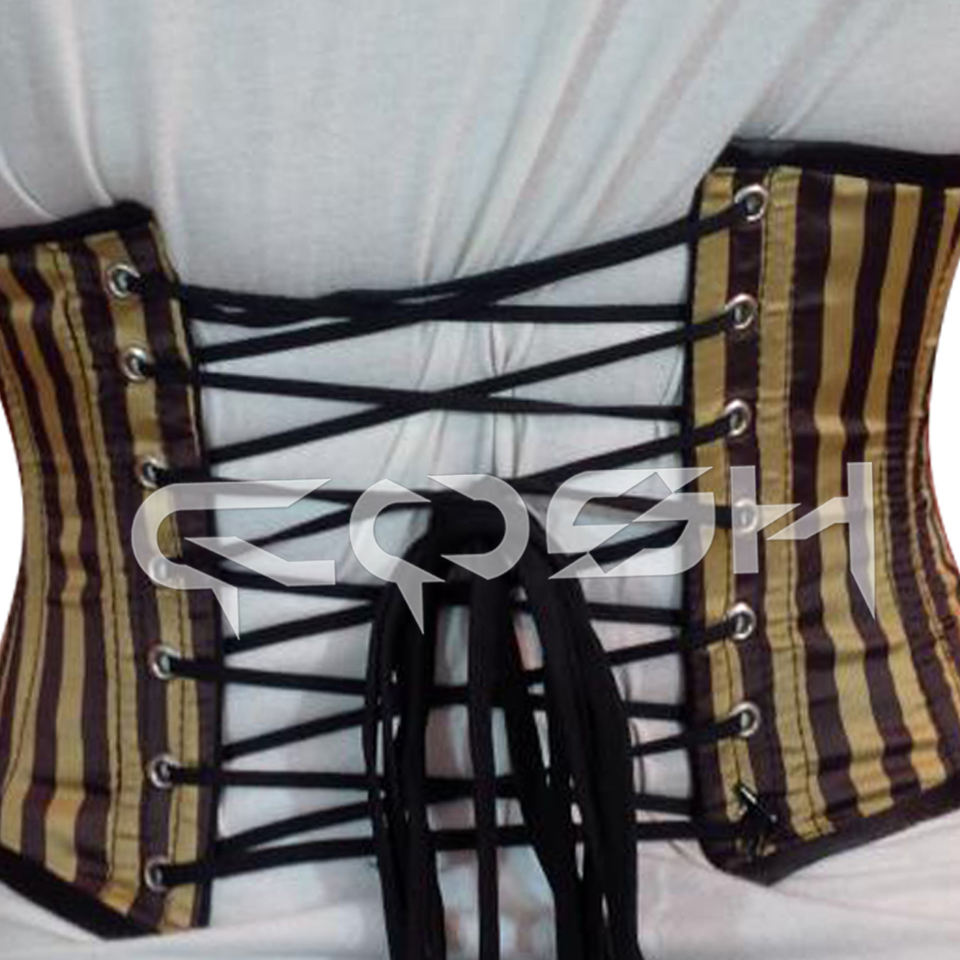 Vintage Gold & Black Satin Striped Waist Cincher Corset Plus Size Steel Boned Underbust Waspie With Back Lace & Front Busk