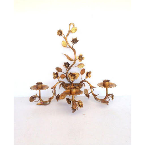 Vintage Gold Gilded Tole Floral Wall Sconce Candle Holder - Hand-Forged Metal Flower for Luxury Home Wedding Decor & Wall Art