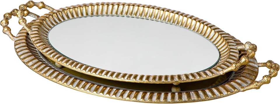Vintage Gold Mirror Vanity Trays with Handles Round Gold Set of 2 Vintage Large Oval Gold Jewelry Decorative Tray