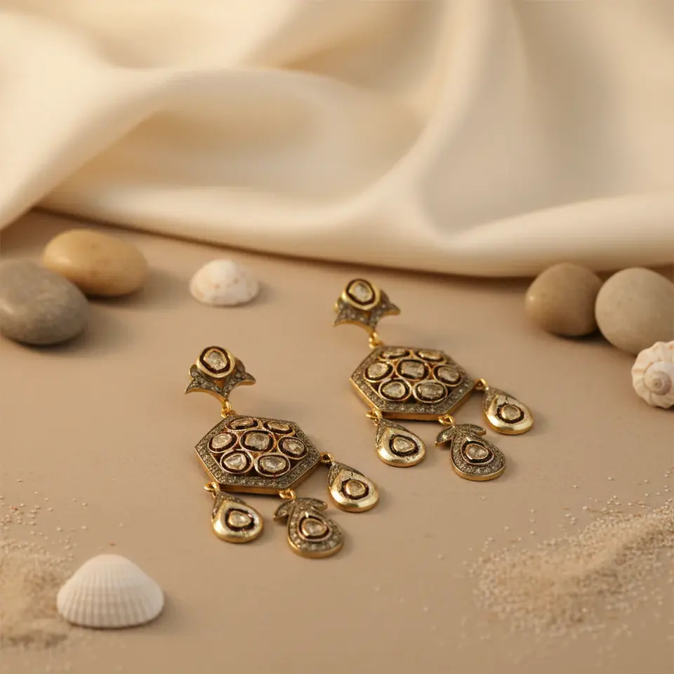 Vintage Gold-Plated Diamond Earrings for Women Elegant Jewelry Accessory