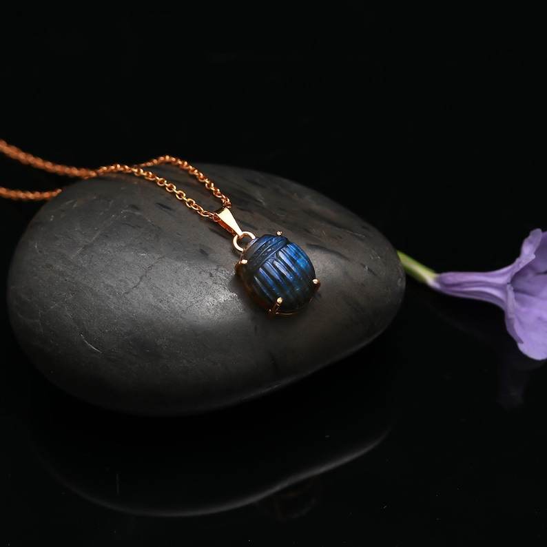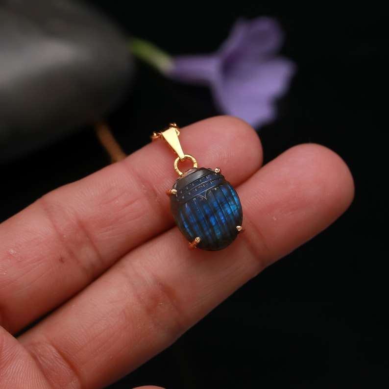 Vintage Gold Plated Flashy Labradorite Carved Scarab Pendant Handmade 925 Silver Natural Healing Crystal Jewelry for Women