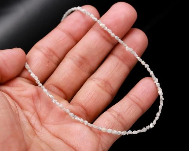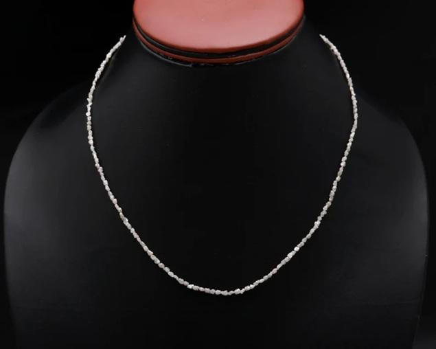 Vintage Gold Plated White Diamond Necklace 925 Sterling Silver Handmade Personalized Gemstone Jewelry Natural Rough Diamond Bead