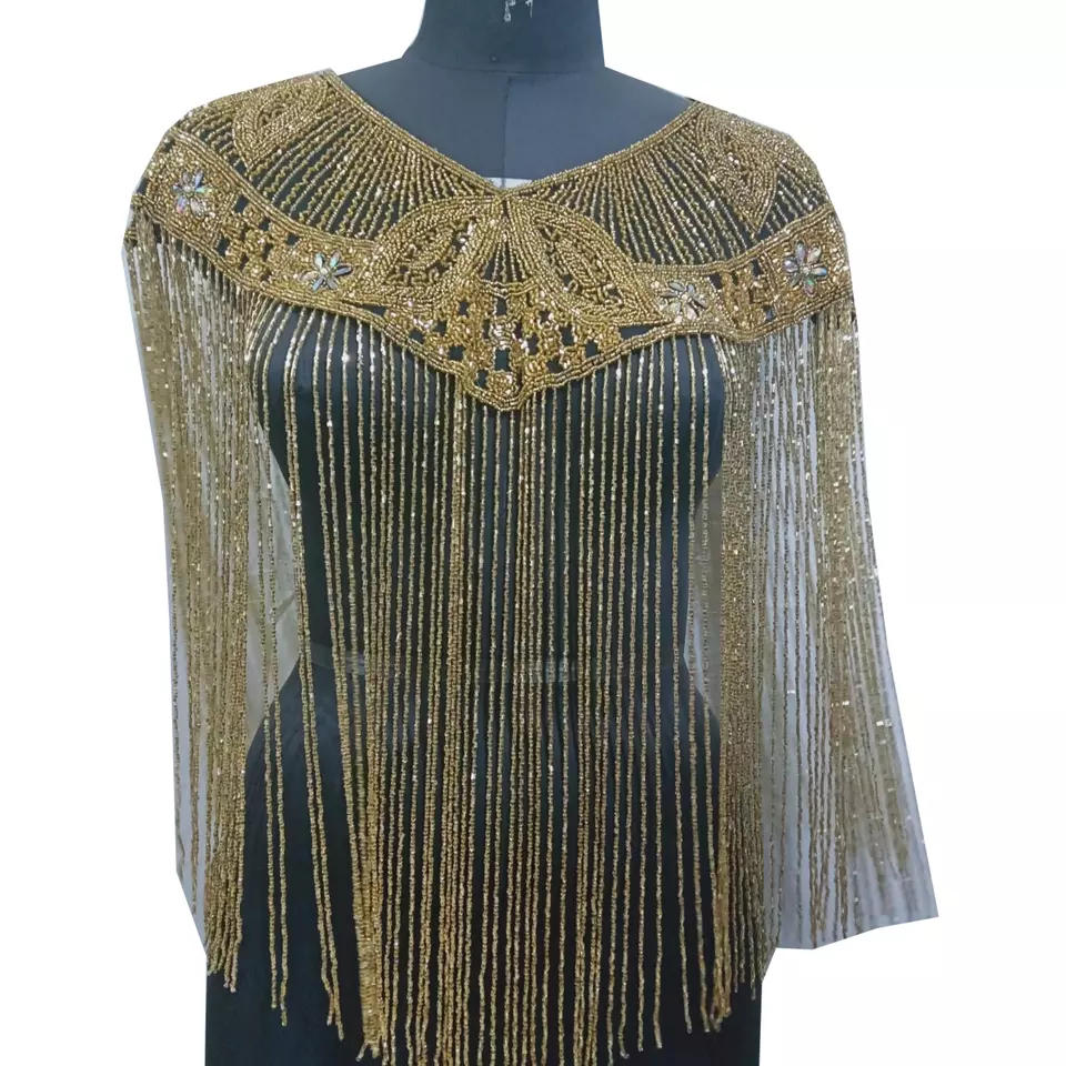 Design:Beautiful Hand Beaded embroidery with beaded long fringes