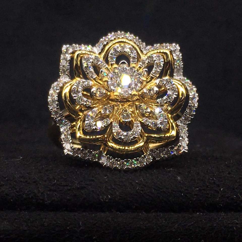 Vintage Golden Bloom Fine Ring with SI Clarity Sparkling Diamonds Makes a Grand Statement