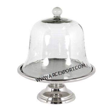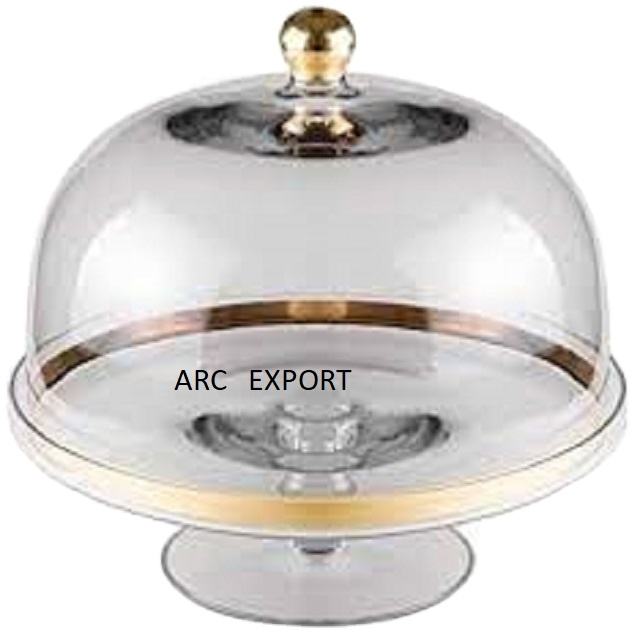 Vintage Golden Metal Glass Home Designing Revolving Glass Dome Decorative Style Cake Stand for Home Dining Ware Accessories