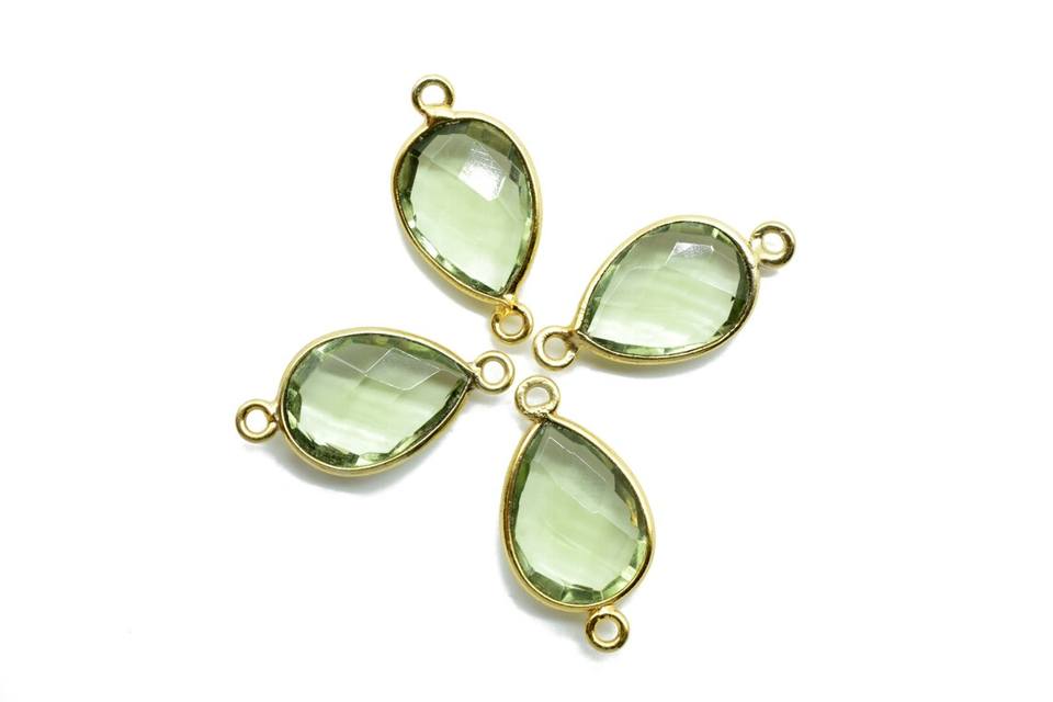 Vintage Green Amethyst Pear Cut Gemstone Jewelry Bezel Connectors Gold Plated Pendant Earring Charms Components