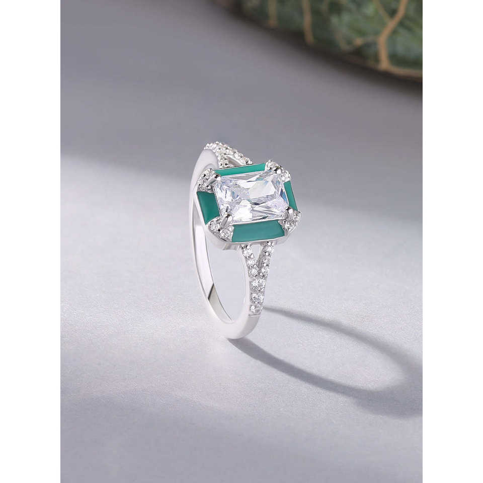 Vintage Green Enamelled Opening Ring for Women 18K Rose Gold Plated Tarnish-Free Inlay Statement Ring Eternity Trendy Number