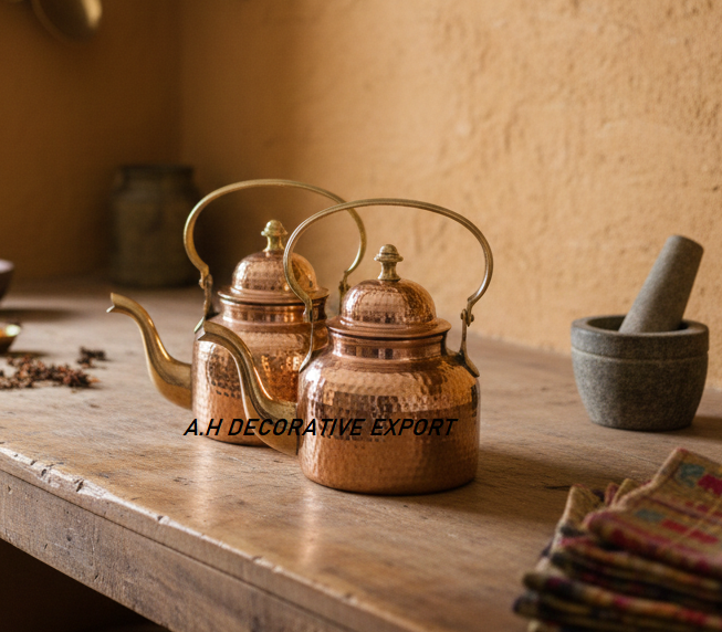 Vintage Hammered Copper Kettles with Metal Handle and Lid Eco-Friendly Non-Toxic for Tea Serving and Party Use