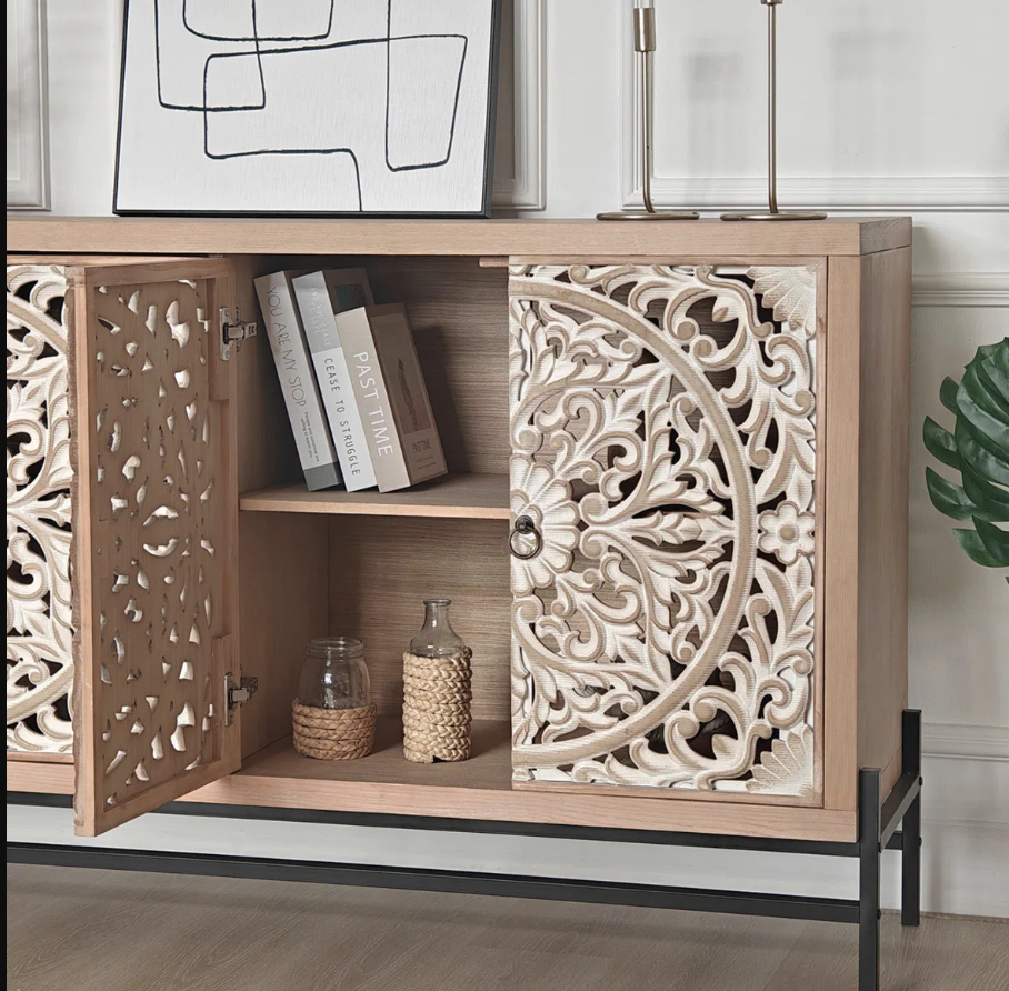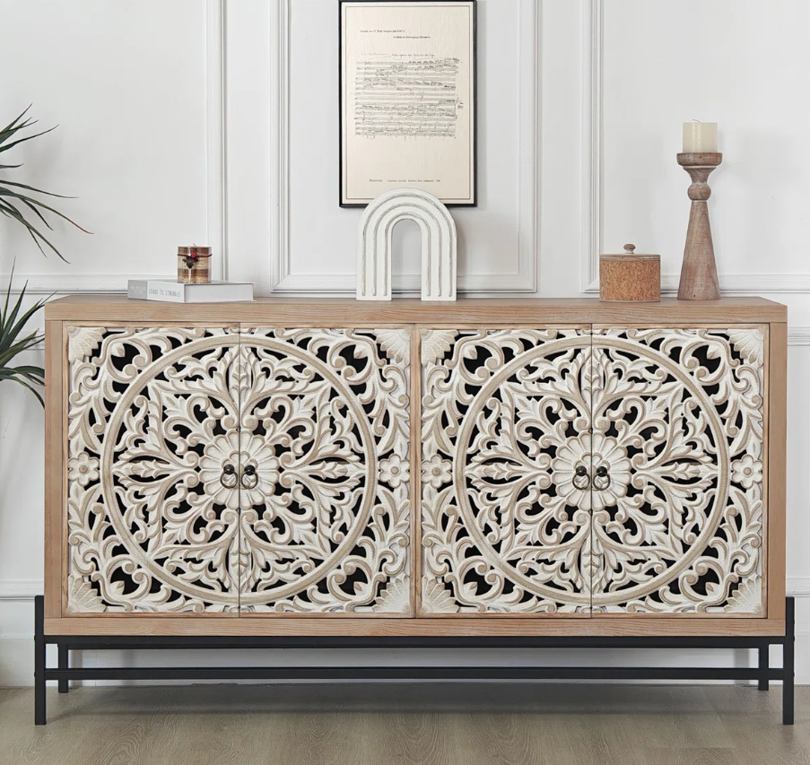 Vintage Hand Carved Wooden Sideboard Cabinet for Home Office Living Room Bedroom Hall for Living Room Kitchen Storage Cabinet