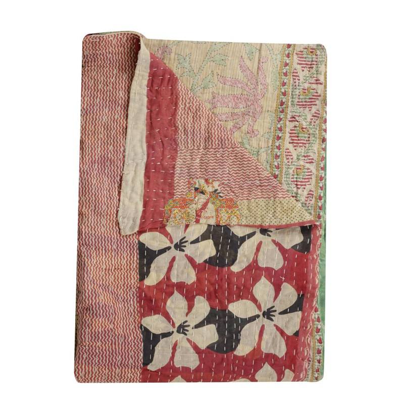 Vintage Hand Embroidered Kantha Cotton Comforter Traditional Handmade Quilt for Cozy Bedding & Decor