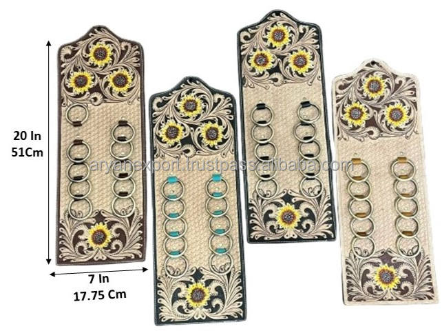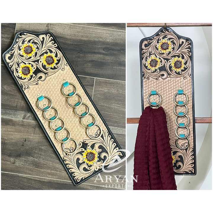 Vintage Hand Tooled Leather Scarf Rag Holder with Multi Ring Design for Closet Organization Decorative Durable Storage Accessory