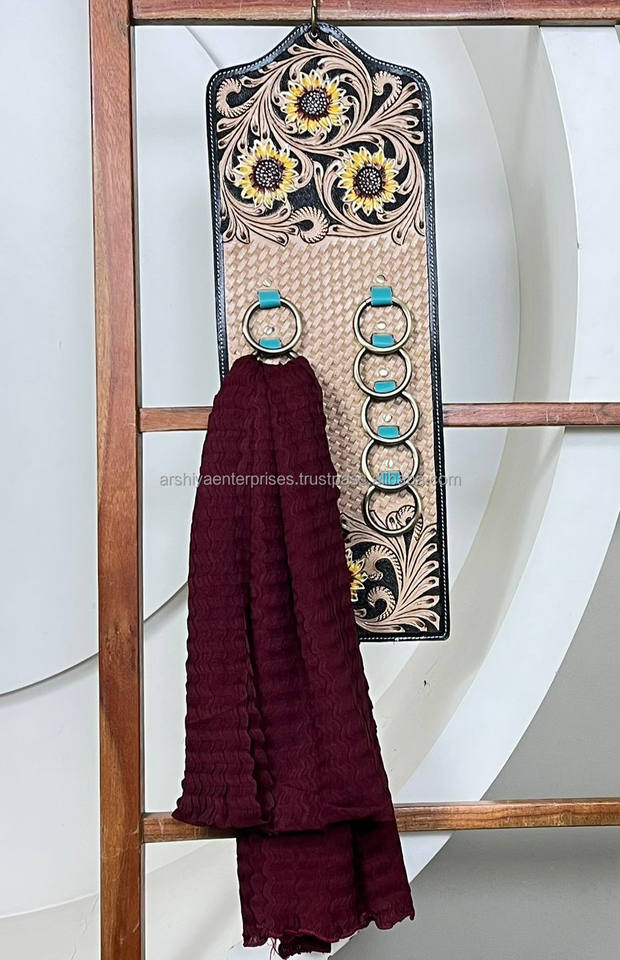 Product name:Hand Tooled Cowhide Leather Wild Rag Holder