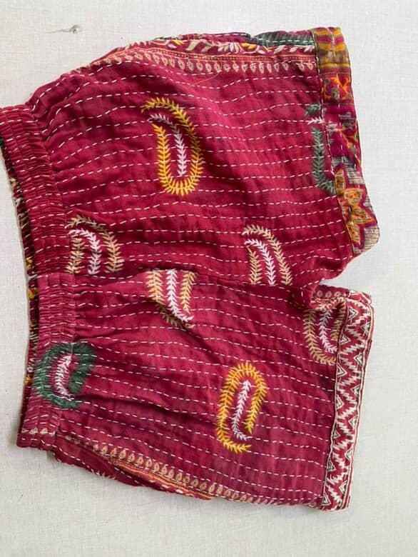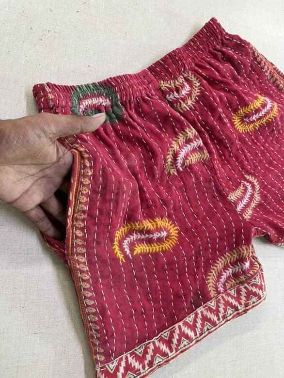 Vintage High Waist Women's Cotton Shorts Handmade Kantha Embroidered Beach Shorts Breathable for Spring Season Hot Sale