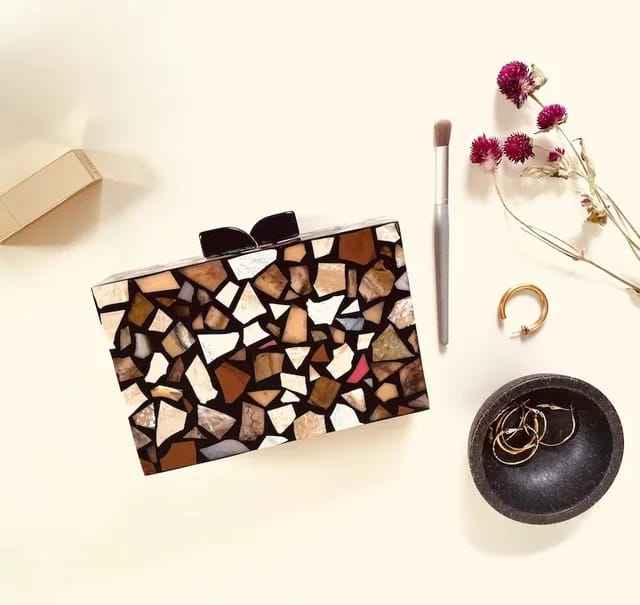 Vintage Handmade Wooden Resin Clutch Imitation Pearl Gold Plated Vintage Butterfly Solid Charm Clutch Complete Women's Wedding