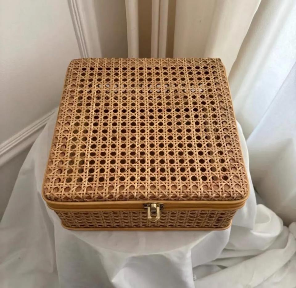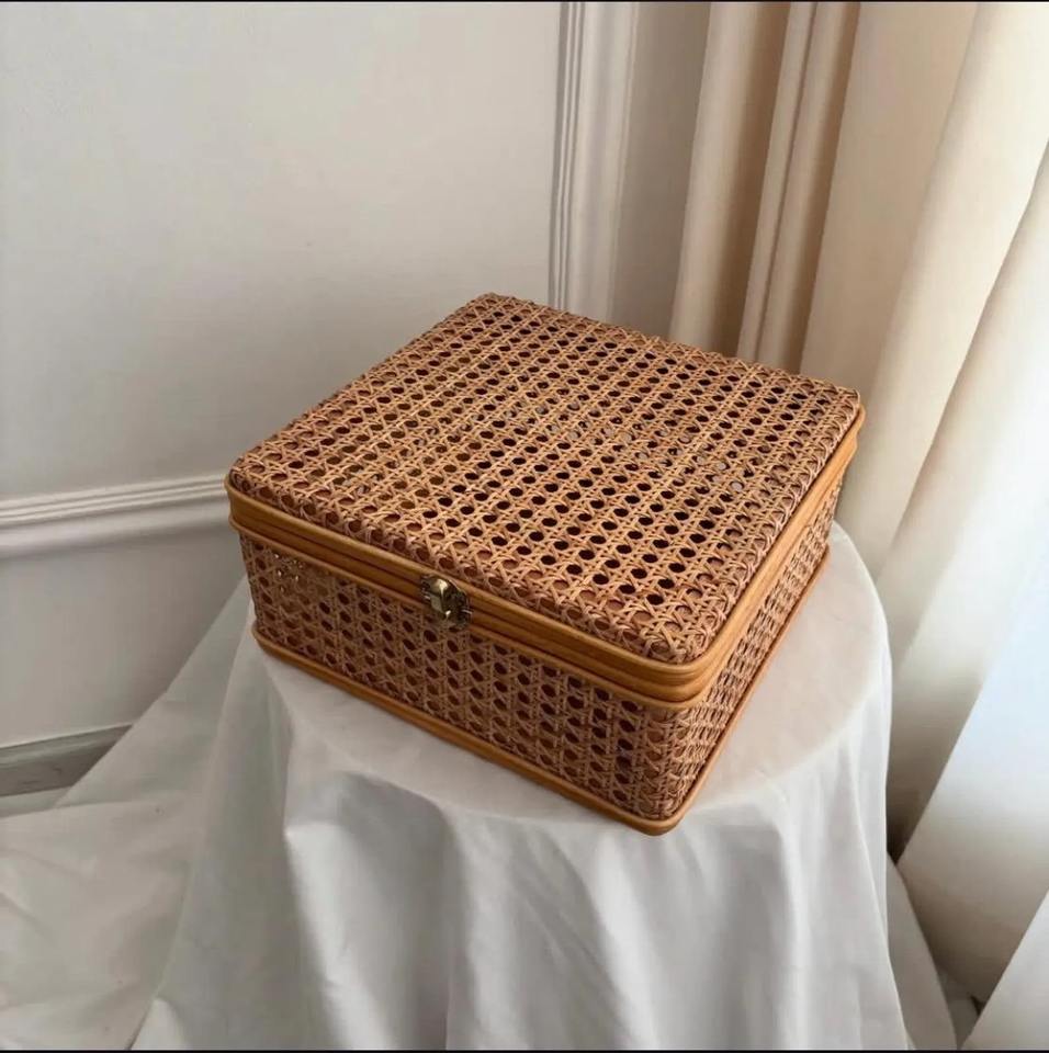 Name:Vintage Handwoven Rattan Keepsake Box with Lid Size: W9,8 x H4,7 inch