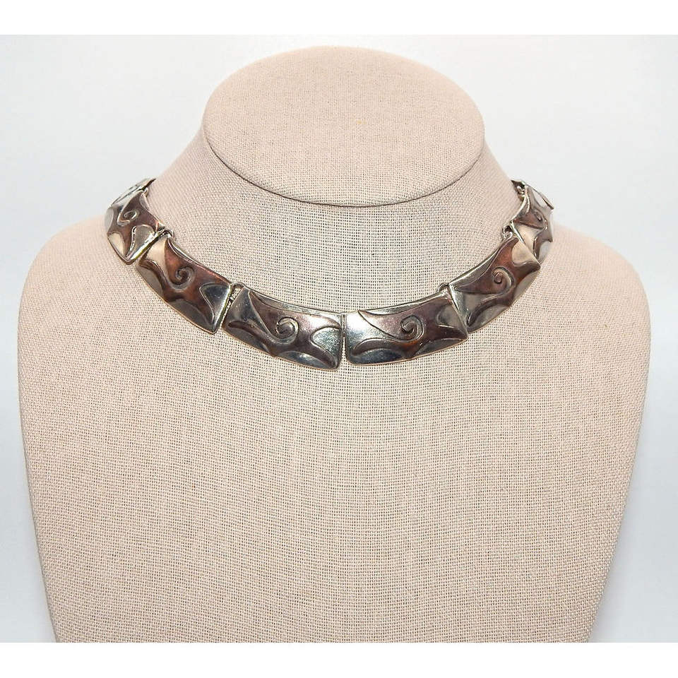 Vintage Heavy .925 Sterling Silver Choker with Copper Tribal Accents 14k Gold Plated Link Chain for Wedding and Gift