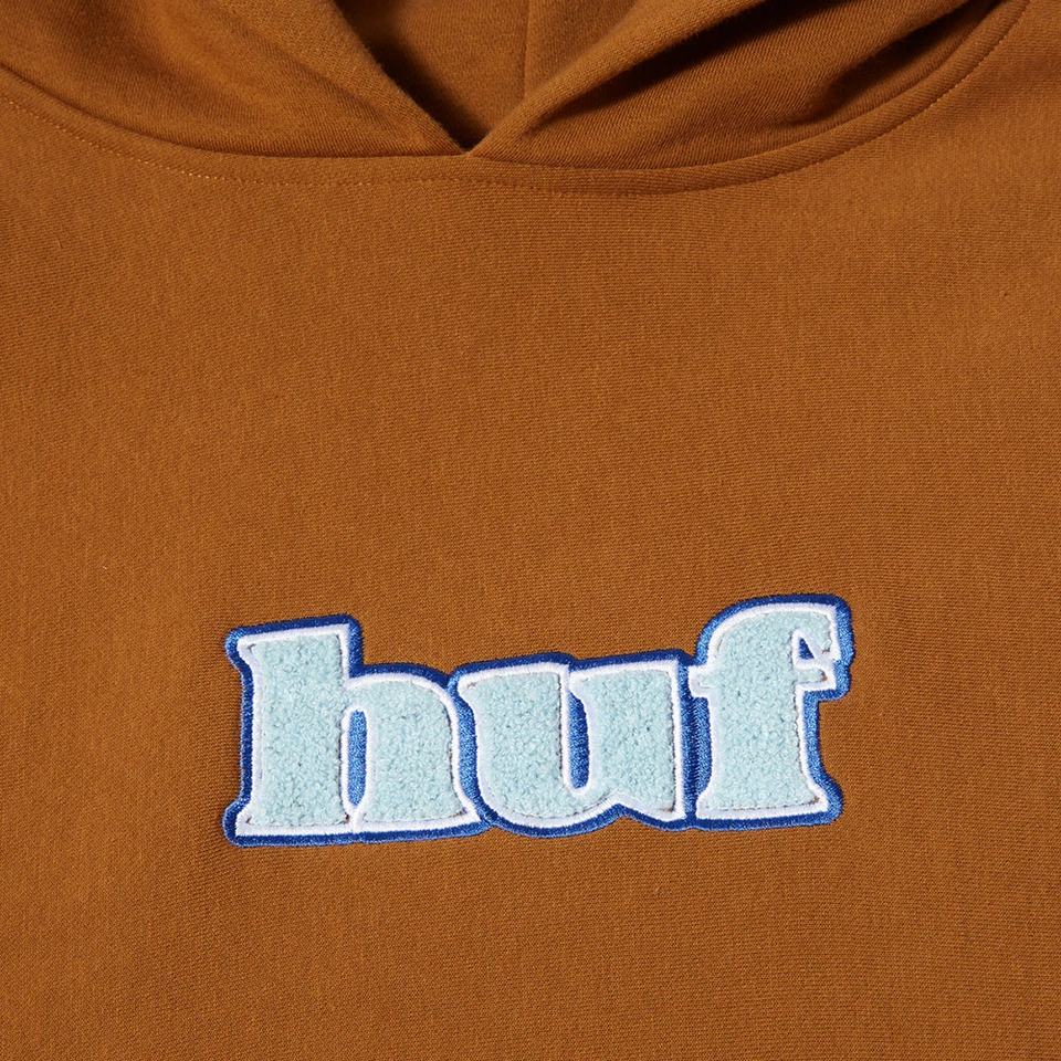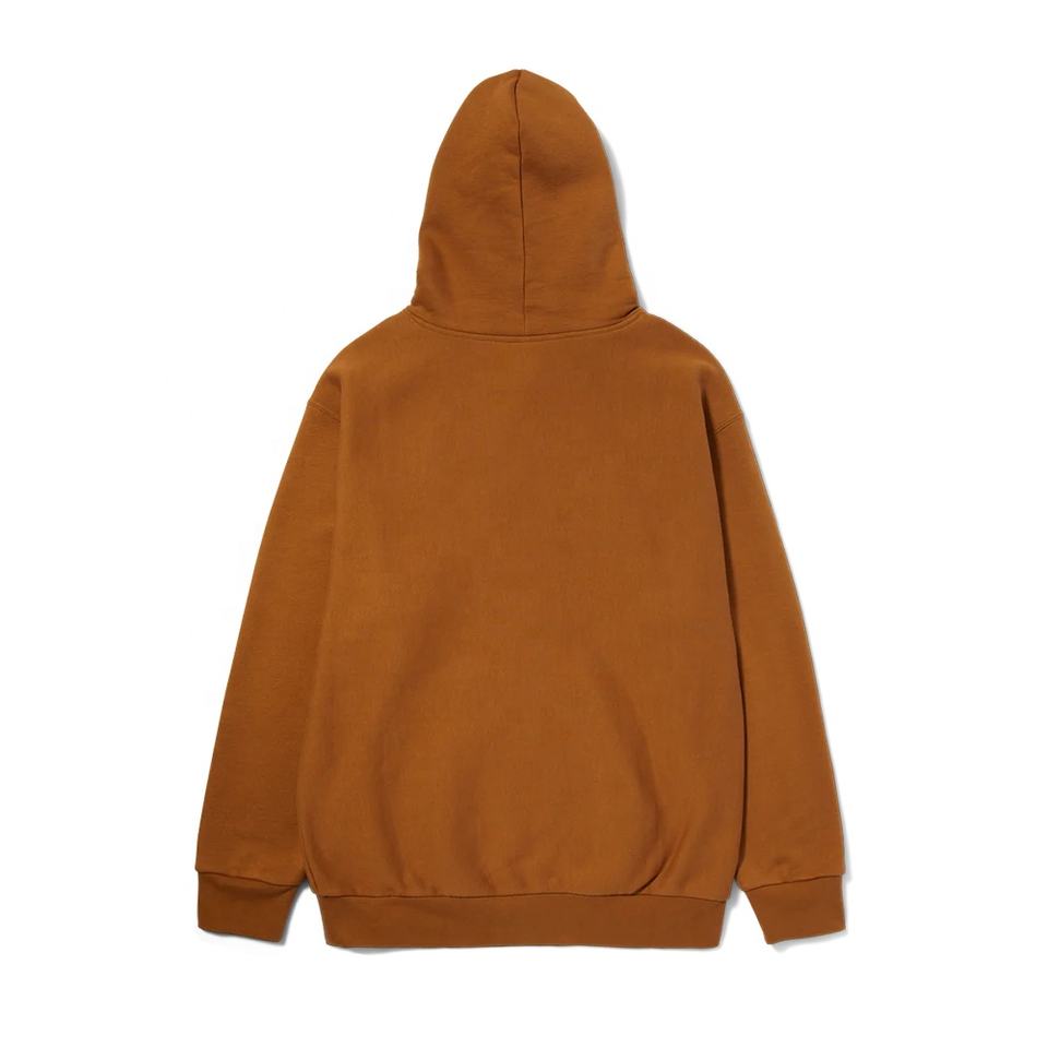 Vintage 380 GSM Organic Cotton Fleece Pullover Hoodie for Men Regular Brown Embroidered Applique Washed Hooded Design Couple